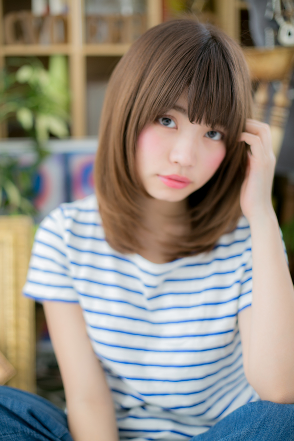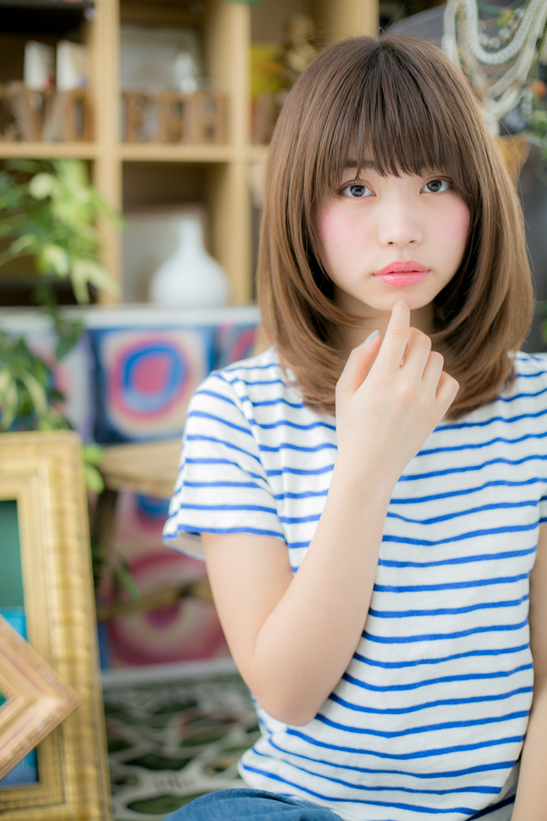 フリンジバングから目元をチラ見せしてキュートな表情を作るモテミディ。頬のラインに沿った毛流れで小顔対策もバッチリ!ミルクティカラーやベージュカラーで透明感を出して☆カジュアル~フェミニンまでイメチェンOK!