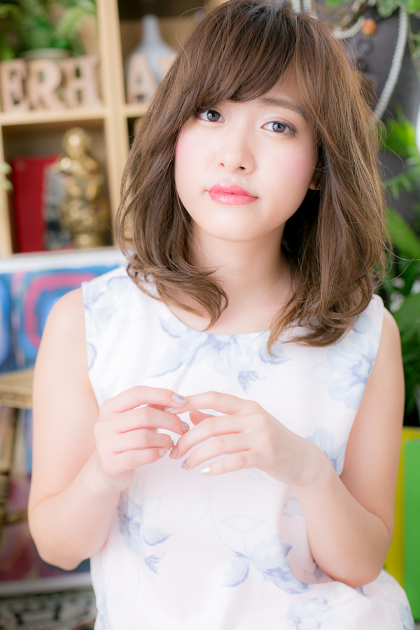 くせ毛風のニュアンスカールがラフかわいい☆リラクシーなナチュラルミディ。ベージュカラーやミルクティカラーで顔周りを明るくするのがGOOD。ノームコアなスタイルからイメチェンしたい方や伸ばしかけの方にオススメ!