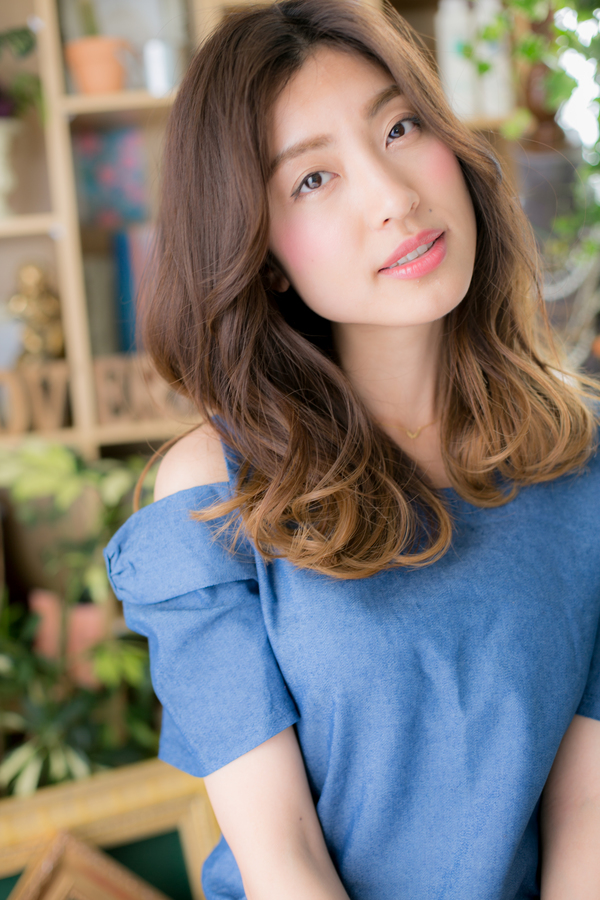センターパート&ボリュームカールがグラマラス!イイ女オーラ全開エアリーロング。グラデーションカラーで表情豊かに見せつつカジュアルダウンすれば同性からも好感度UPのモテスタイルに!(メイク担当:北浦和店 近藤)
