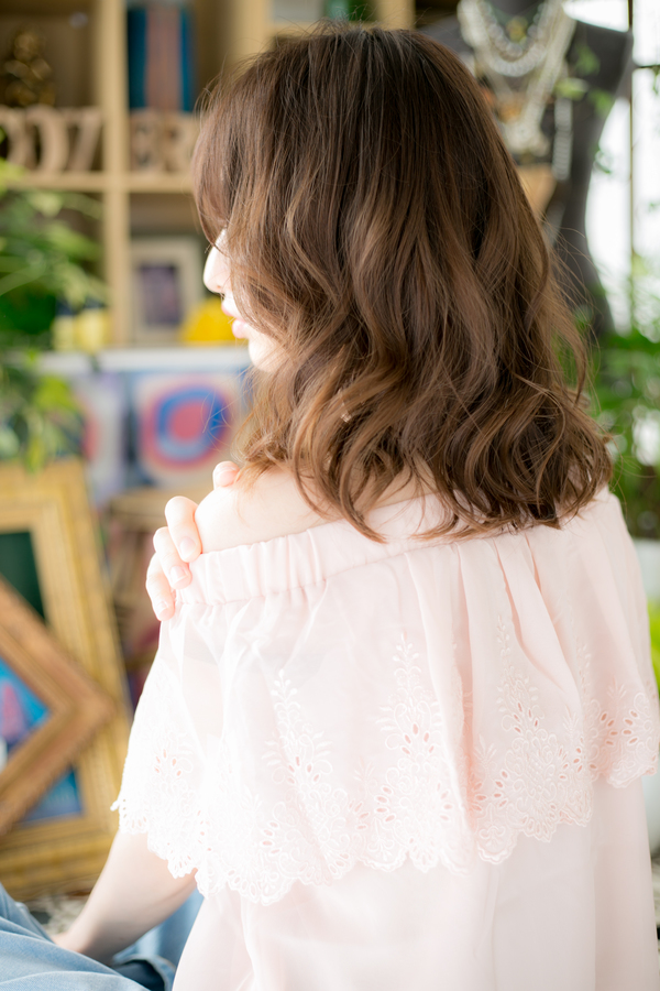 作りこみ過ぎないナチュラルなウェーブが印象的な抜け感ミディ。ゆるやかなくびれカールでほんのりセクシーに♪斜めバングやシースルーバングで目元を印象つけて目力UP!サイドのレイヤーで輪郭をカバーして小顔見せも◎