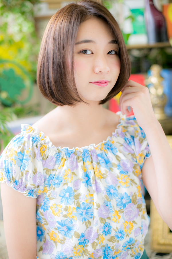 ツヤ感溢れるナチュラルボブ。前下がりで小顔に見せてシャープな印象に仕上げた大人ボブはオフィスでもOK!センターパートや斜めバング、厚めバングと合わせても大人かわいい。耳かけも◎(メイク担当:川口店 成田)