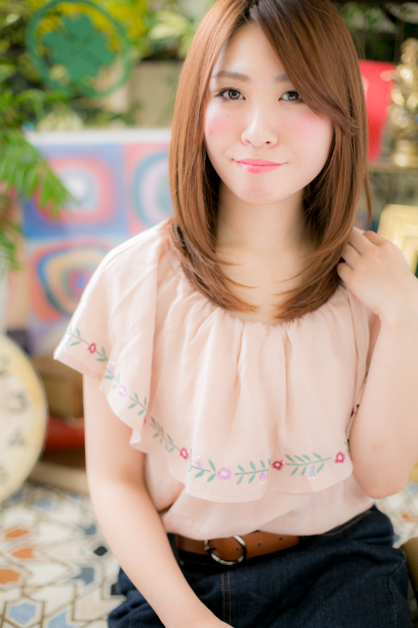 顔周りのレイヤーを活かして、内側にくるんとワンカールに。顔を包み込んで小顔に見せます。斜めバングや厚めバング、耳かけも大人かわいい。くせ毛風カールのふわミディもフェミニン♪(メイク担当:川口店 成田)