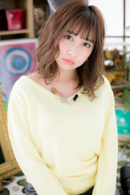 大人かわいい♪甘めカラー☆くせ毛風ミディ