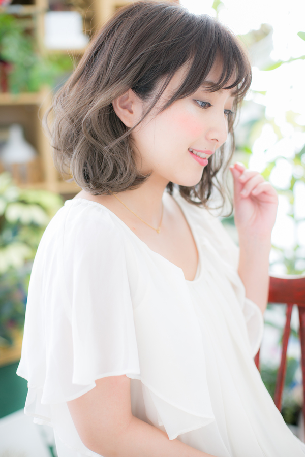 厚めバングやオン眉で目元を印象付けて個性的なガーリースタイルにしたり、耳かけしても大人かわいい。前下がりで小顔に見せているので、ボブやミディ初挑戦の方にもオススメ。グラデーションカラーやグレージュがトレンド。
