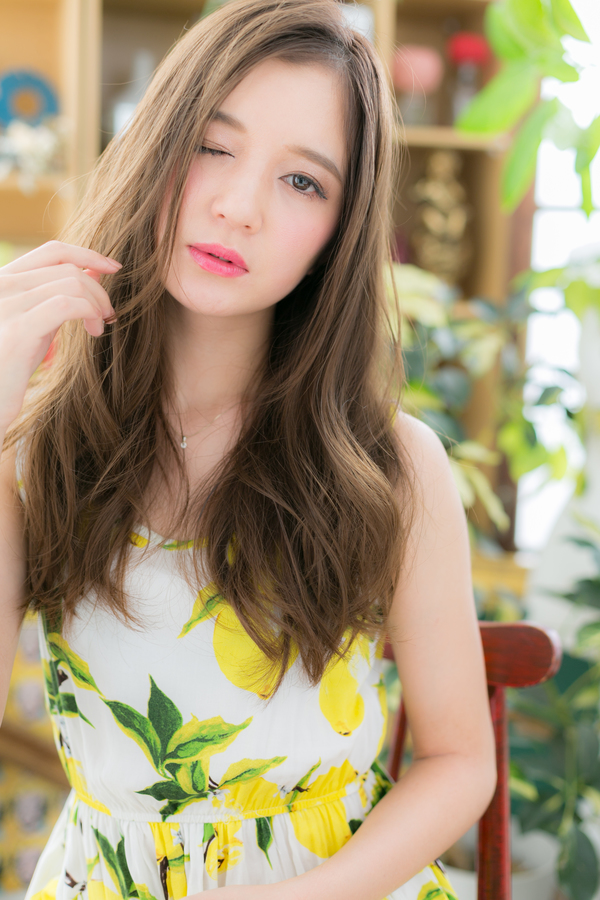 重めスタイルになりがちな暗髪ロングは、くせ毛風ゆるやかなパーマでふわっとやわらかさを出して重軽スタイルで大人女子のファッション度UP。外国人風のツヤカラーで透明感を演出。トリートメントしたようなカラーリングで髪の毛の悩みも解決!30代・40代にもおすすめ!