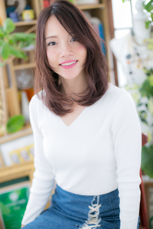 ノーバングでこなれ感を演出したワンカールセミディのヘアスタイル。ピンク系カラーでフェミニンに仕上げて大人女子のコーデを完成。前下がりで小顔にメイク。耳かけしたりラフなヘアアレンジもGOOD。トリートメントしたようなカラーリングで髪の毛の悩みも解決!人気のカラーやアッシュグレー、ブリーチなしもおすすめ☆30代・40代にも◎(メイク担当:川口店 成田)