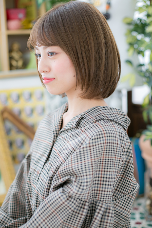 ナチュラル可愛い♪小顔サラツヤ前下がりボブ