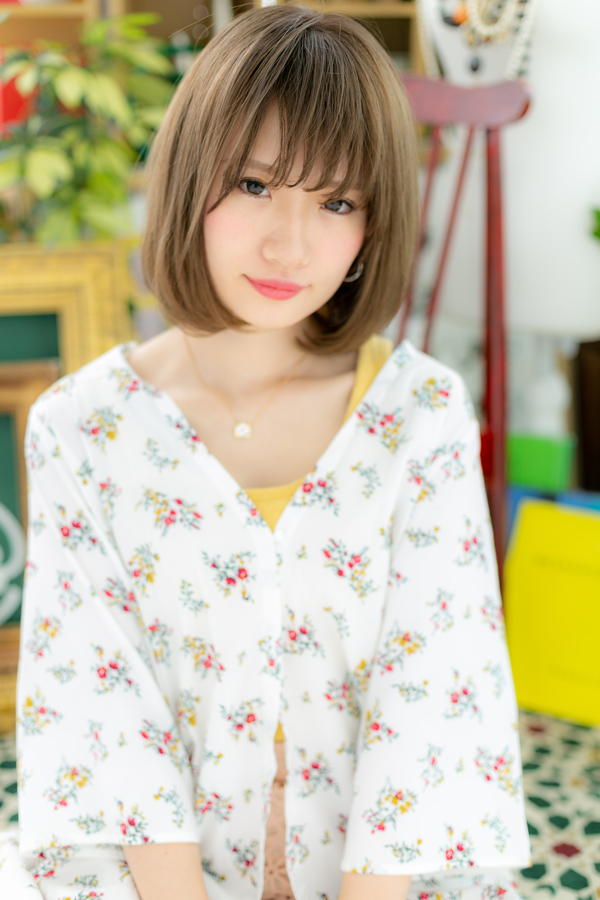 外国人風カラーのツヤ感前下がりボブディ