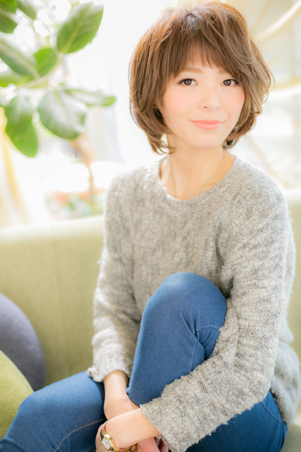 前髪から顔周りにかけて、ラウンドにつながるようにカット。ランダムなミックスカールで無造作なクセ毛風に。外国の少女のような、フェアリーでリラクシーな雰囲気に仕上がります♪短めバングでキュートな抜け感を。斜めバングや厚めバングにしてもカワイイ☆