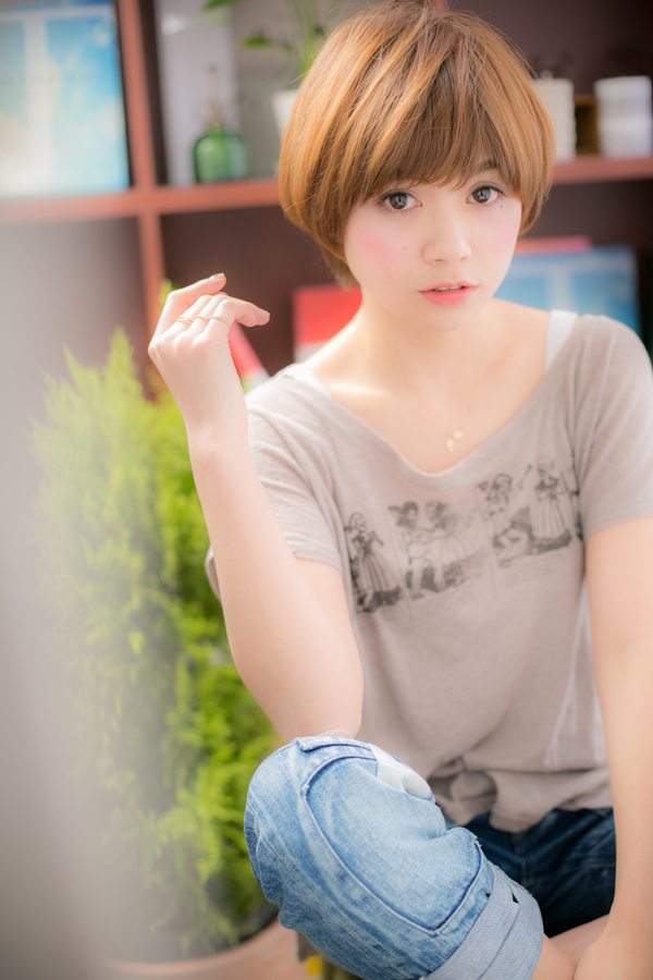 明るめのカラーが重く見せないポイント☆さらさらのマッシュボブに目ジカラUPの眉下バングで可愛さを。ボリュームのでやすい方は、さらつやキープのストレートがオススメです!