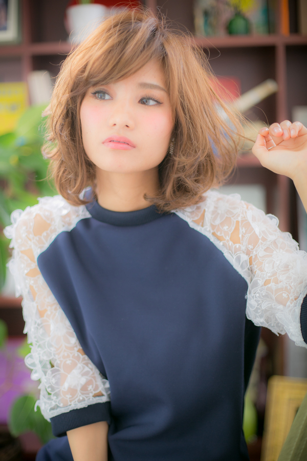 女らしさを残しつつ、ちょいクールなハンサムヘア。無造作なカールが小顔効果も引き出す大人かわいいセミディスタイルです。明るめの透き通るカラーとラフなカールがハーフっぽい雰囲気さをかもしだします♪