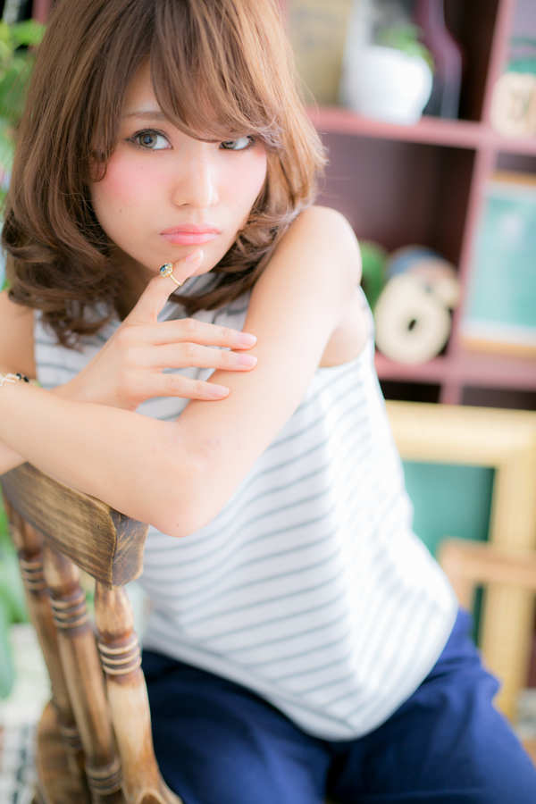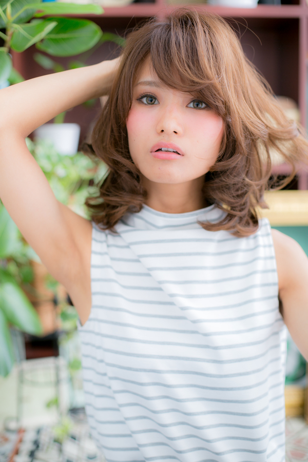 大きめの毛先メインにかかったカールでスタイリングも楽々。伸ばしかけの方やネコっ毛,直毛の方にもオススメなスタイル。