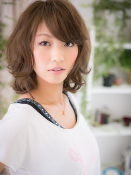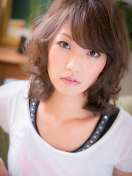 全体的にゆるく、柔かいウェーブ。全体的にカラーも明るめですがパーマで動きがでるので、少し暗めのカラーでも似合います。毛質改善ケア―も入っているので、パーマとカラーの同時施術でも、ツルツル、さらさらに仕上がります。