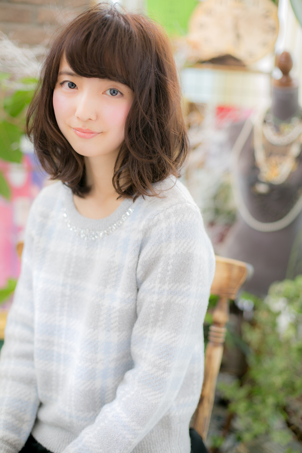 鎖骨下の長さに内巻きメインパーマで方上で揺れる女性らしい印象に。伸ばし中でハネてしまうのが悩みの方にオススメのスタイルです。