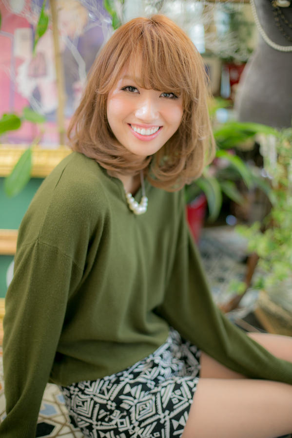 顔周りのシャギーとワンカールで柔かで華やかなミディアムスタイルに。