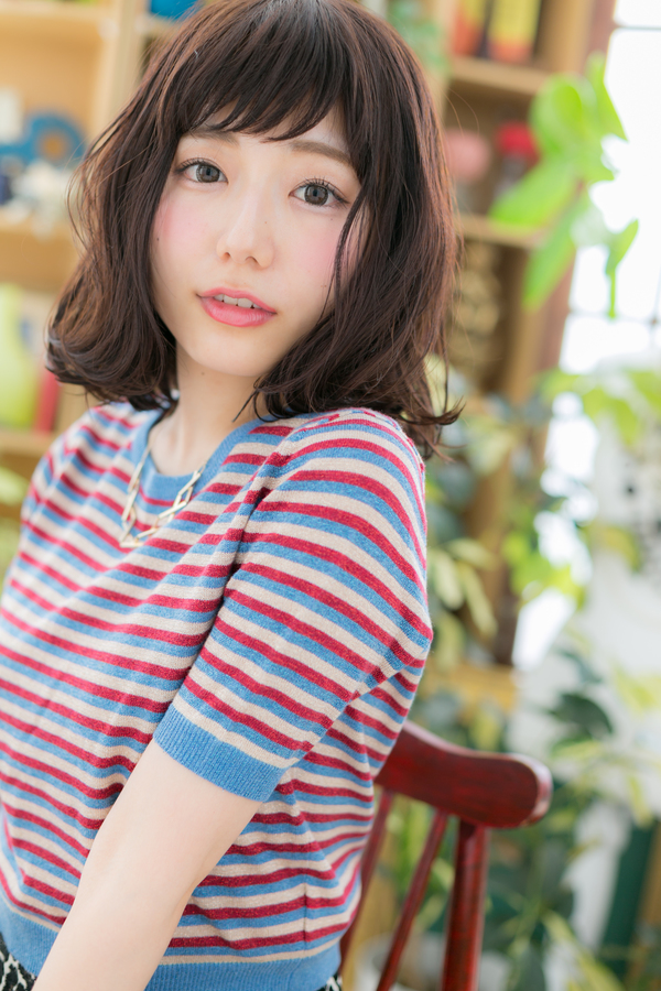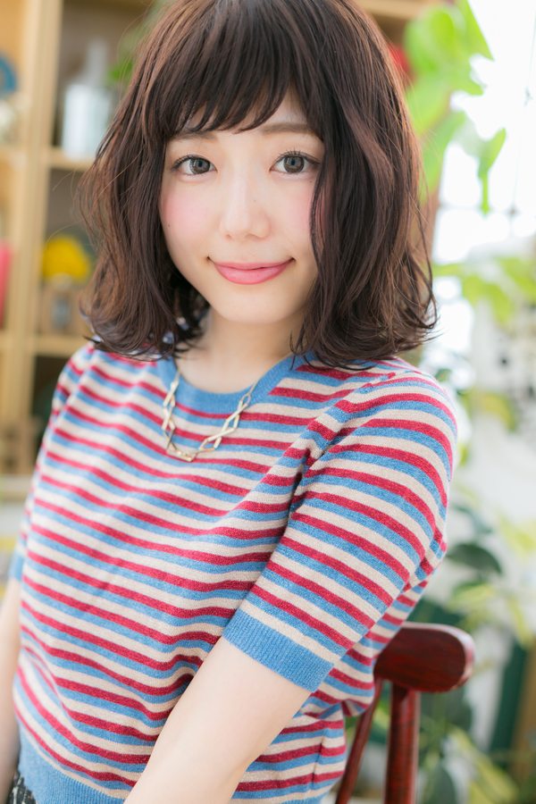 妹系の可愛さが光る愛されふわミディのヘアスタイル。前下がりで小顔見せOK。くせ毛風パーマ×斜めバングは耳かけしても大人かわいい。ミディアムヘアを際立たせるグラデーションで髪の毛の悩みも解決!人気のカラーやアッシュグレー、ブリーチなしもおすすめ!30代・40代にも◎(メイク担当:北浦和店 棟方)