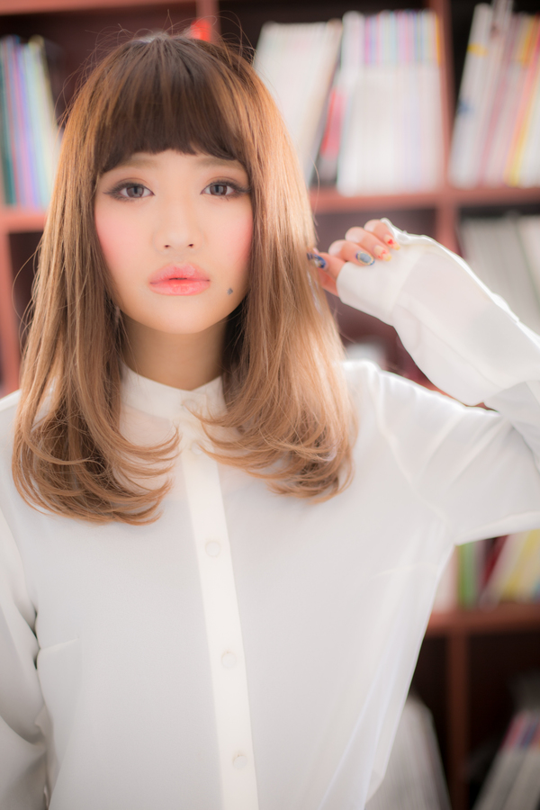 眉上前髪で目力UP♪グラデカラーの個性派ロング