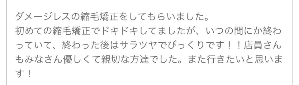 お客様から頂きましたホットペッパービューティの口コミをご紹介させていただきます☆