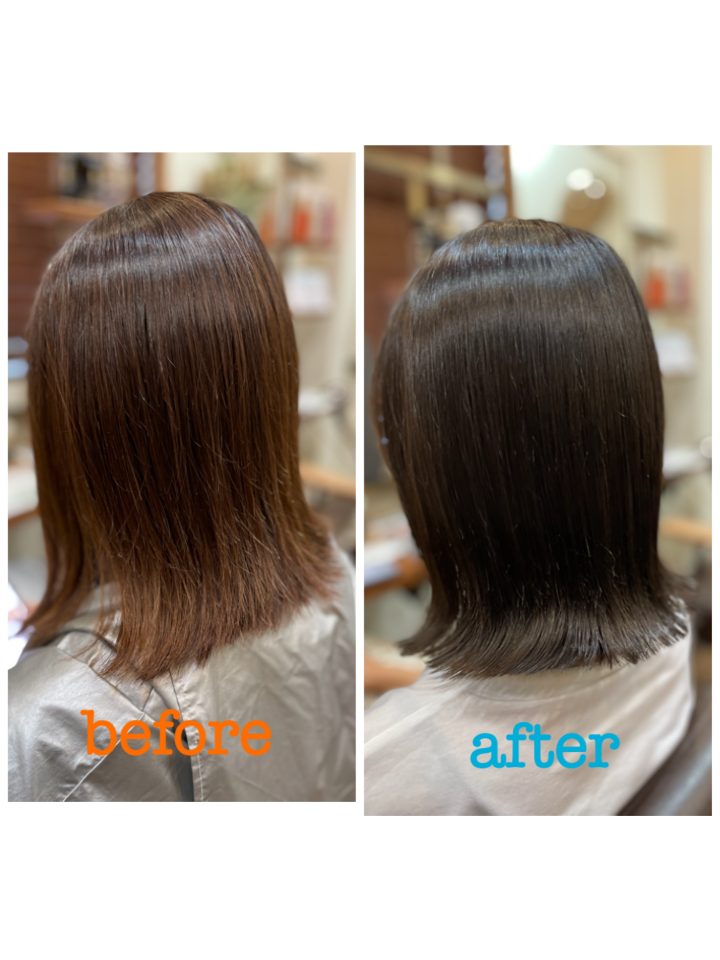 仕上がりはサラサラ、ふんわり。手触りが最高です♪繰り返しカラーリングされている方にはぜひ一度お試しいただきたいメニューになっております。