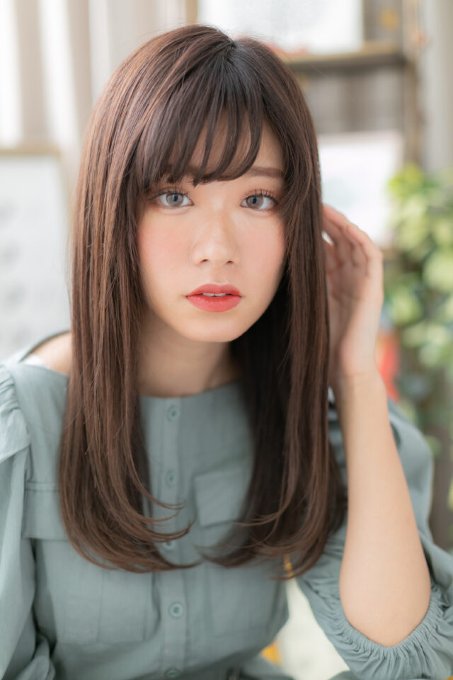 目の上ギリギリの流しバングや、ぱっつんバング、