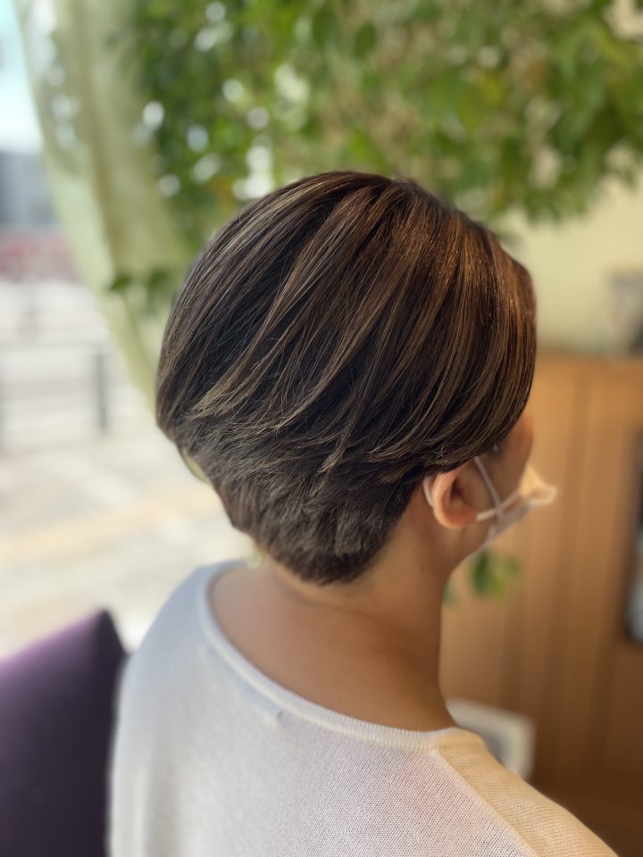 細く入れるので奇抜になりにくく、髪の毛本来の白髪としっかり馴染んでくれるので髪の毛の印象を明るくしつつ動きまでプラスしてくれます。