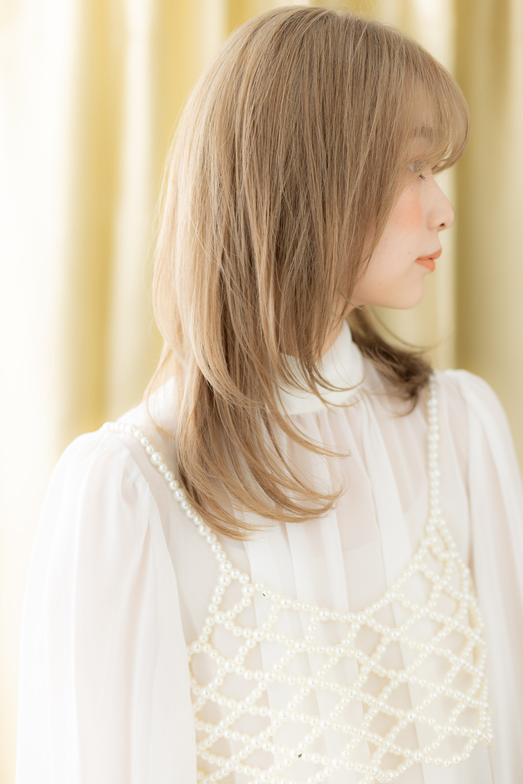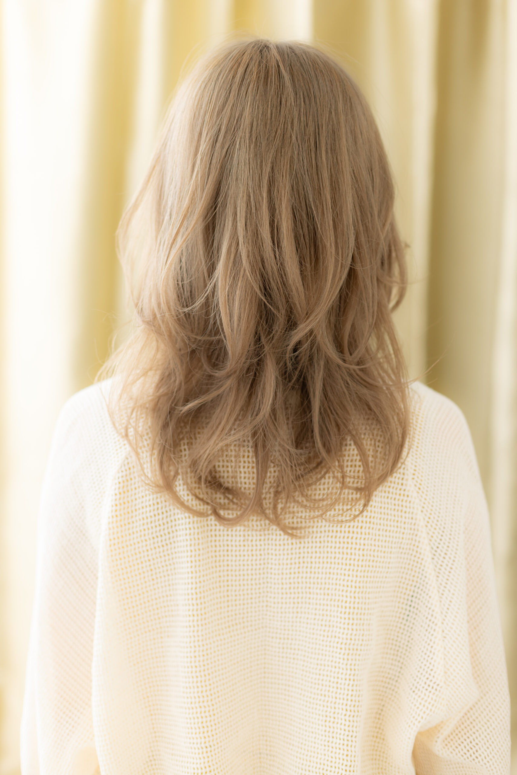 | K | フェイスラインレイヤー/ロングフェザー | 小顔、首まわりからのバランス補修調整/高さ、小顔、バランス補修 |