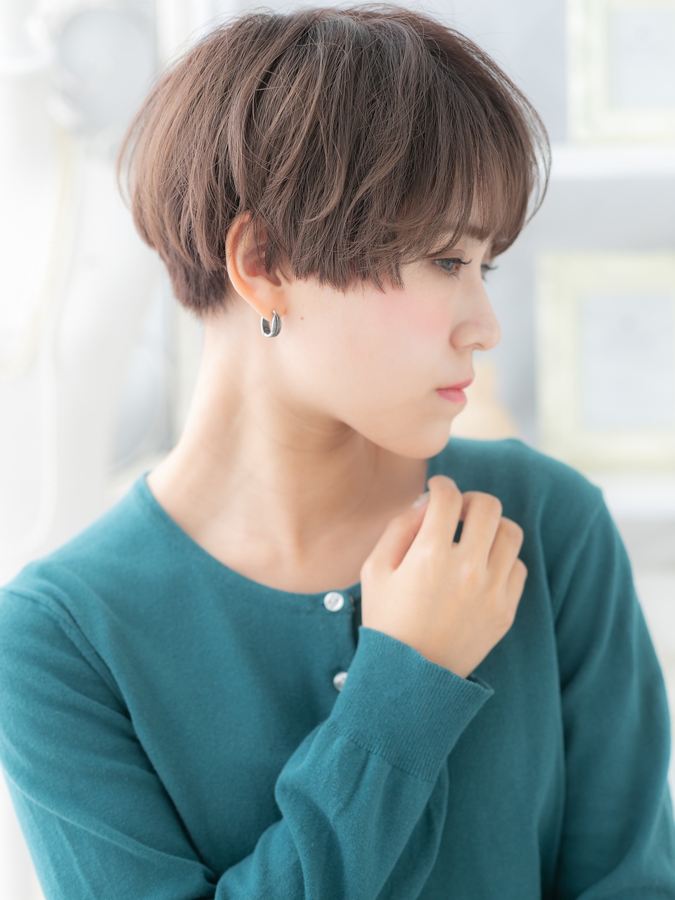 束感マッシュでちょい辛モードに仕上げたアシメショート。斜めバングで目力UPしたり、厚めバングやオン眉も個性的でキュート。くせ毛風カールをつけたエアリーショートもトレンド。前下がりや大人かわいい耳かけも◎