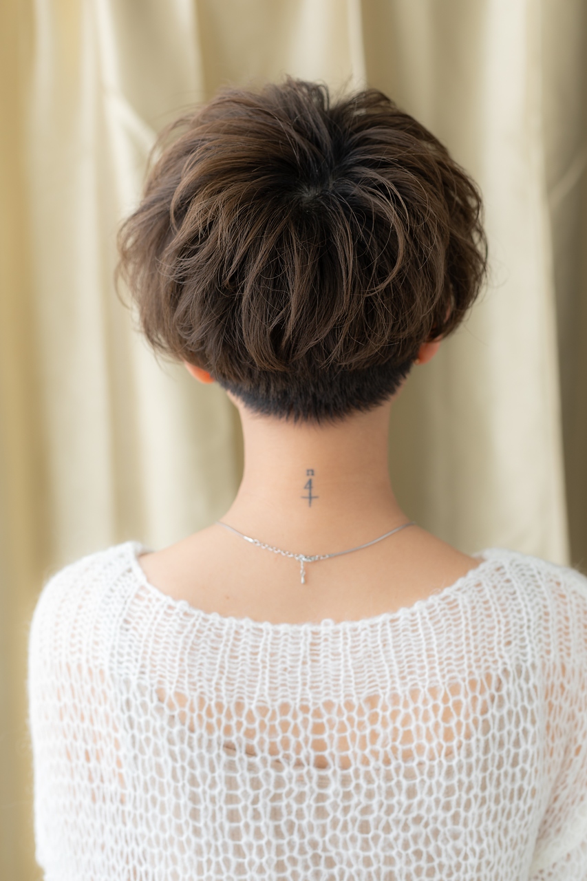 黒髪刈り上げ女子くせ毛風マッシュショート