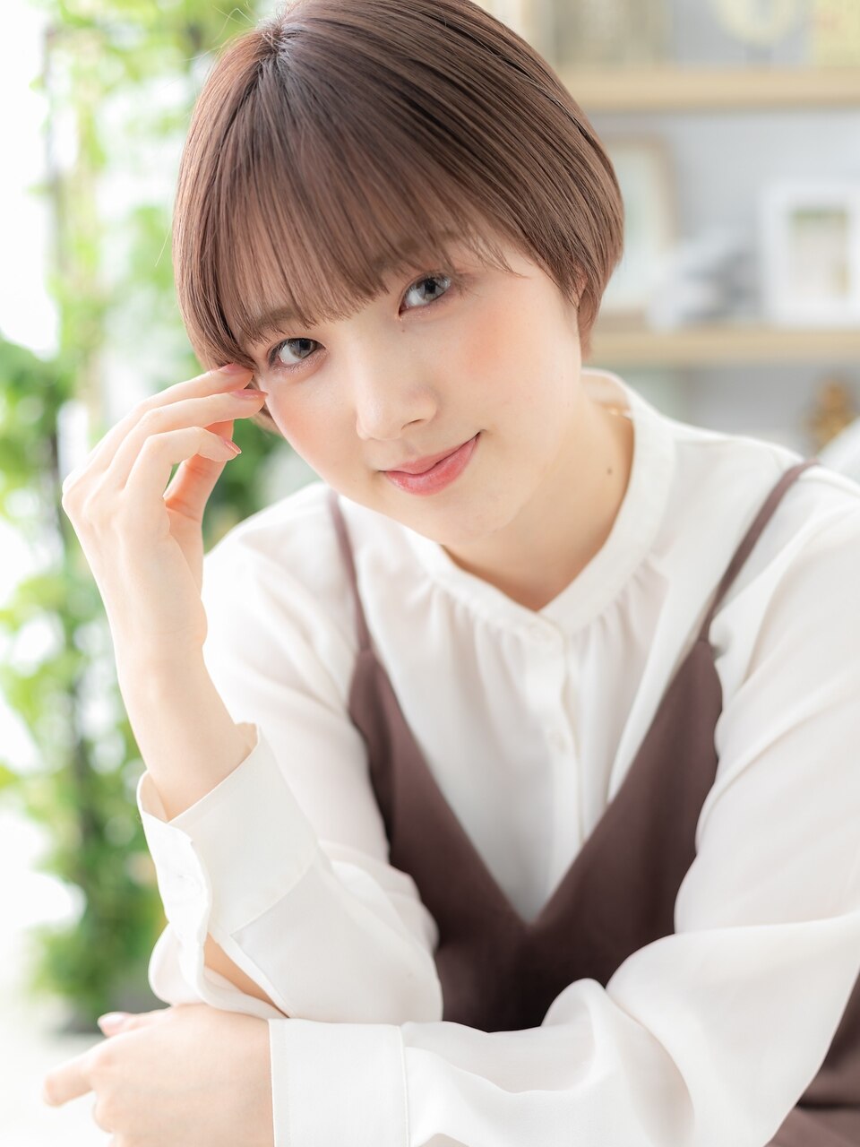 アースカラー小顔丸みショート大人かわいい