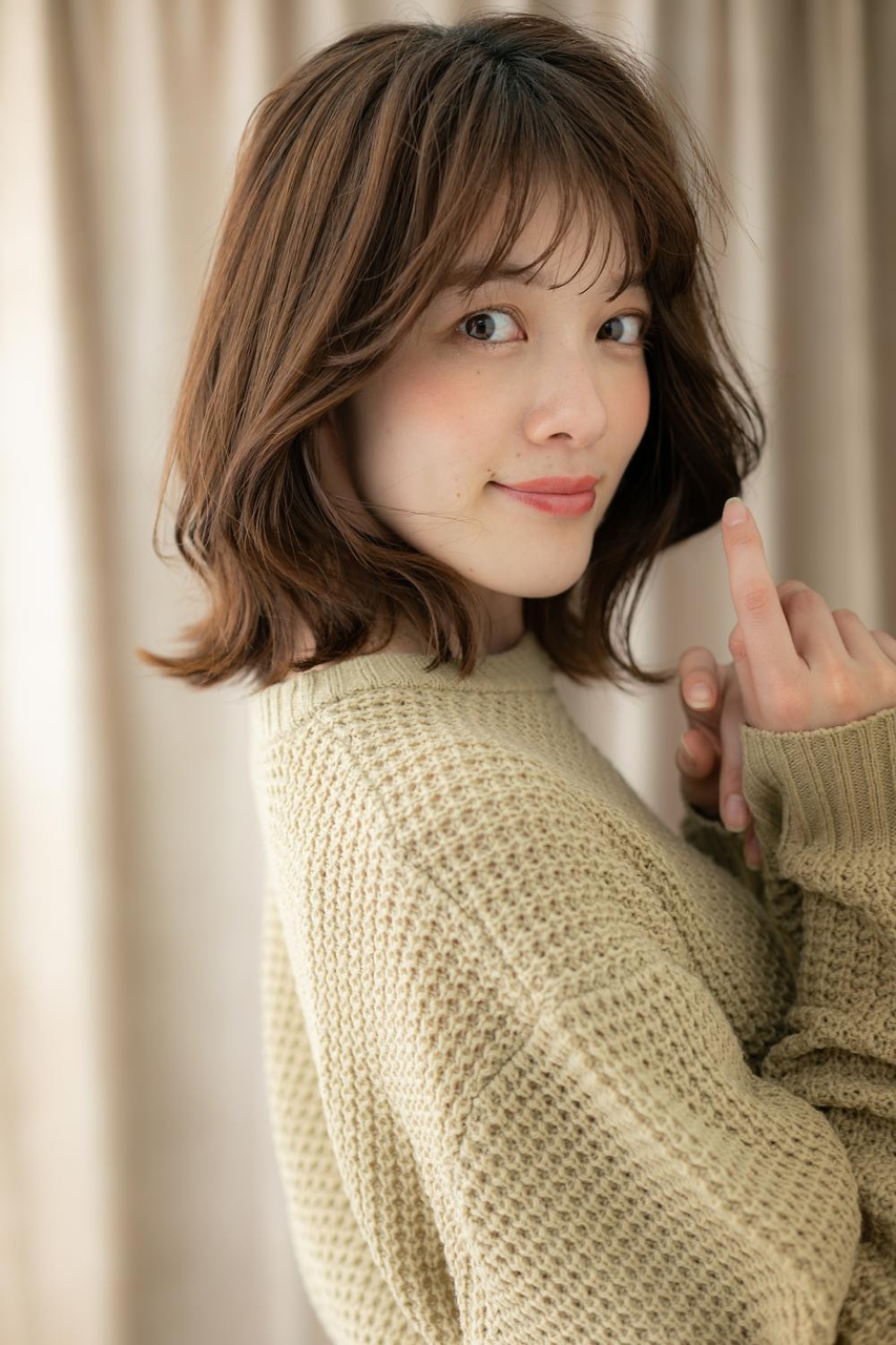 シースルーバングかきあげ前髪、斜めバング厚めバングが大人かわいい。切りっぱなしボブミニボブ、ナチュラルボブから伸ばしかけに。くせ毛風ゆるふわミディや耳かけ前下がりウルフも小顔。(メイク担当:北浦和店成田)